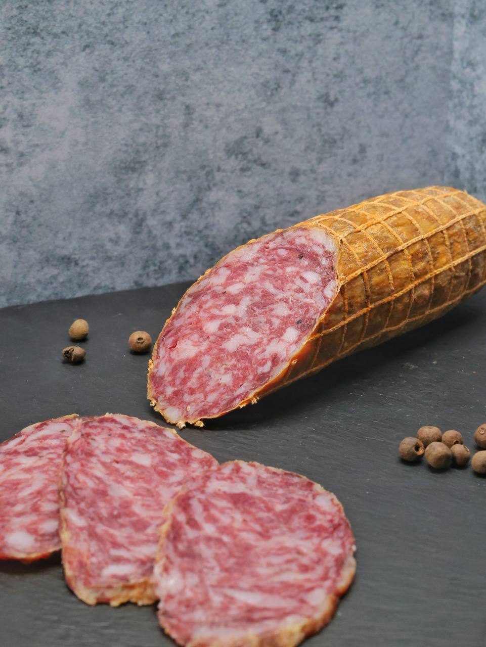 Вкус салями с трюфелем многогранен и сложен. Сначала раскрывается чуть солоноватый вкус свинины, приправленной специями. Затем - ароматный трюфель, оставляя после себя ненавязчивое послевкусие.